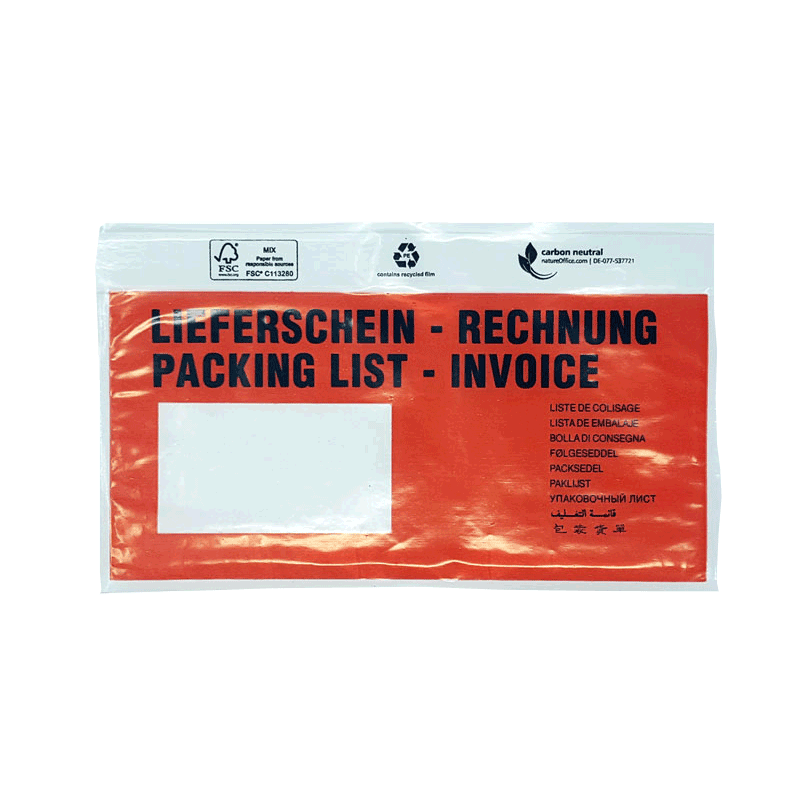 Ebenfalls ist die verwendete Folie aus transparentem, wasserfestem Polyethylen hergestellt. Unsere Lieferscheintasche ist ebenso recycelfähig und mit Scannern lesbar. Zudem sind die Lieferscheintaschen lange haltbar.